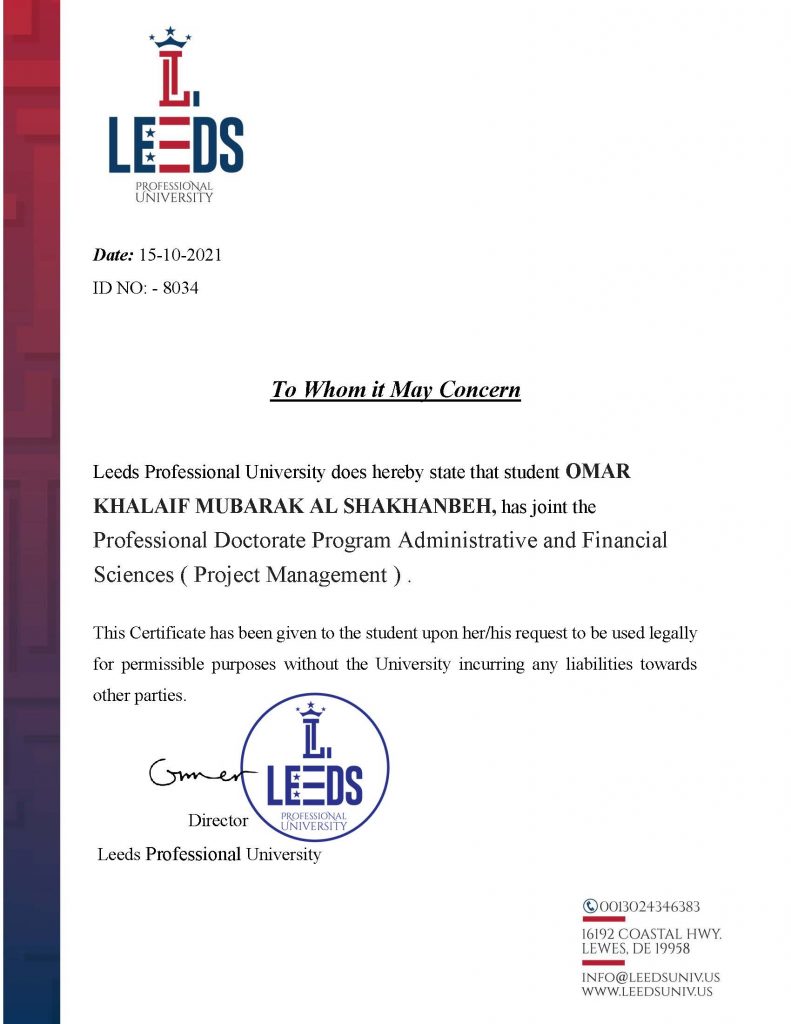 OMAR KHALAIF MUBARAK AL SHAKHANBEH